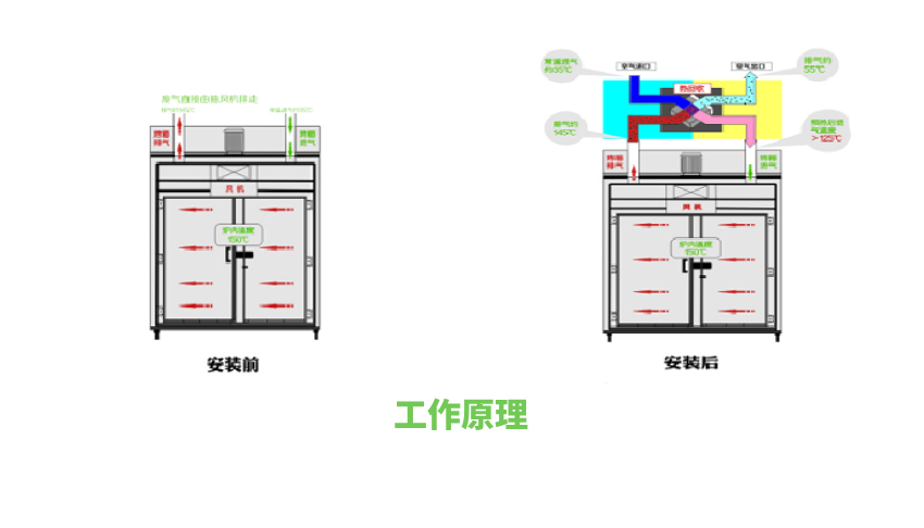 正常使用,节能可达50%以上,如下图排气温度145度,熟交换后进气温度可达100度以上。以一合8D烤箱(双门双控)为例